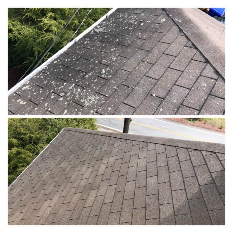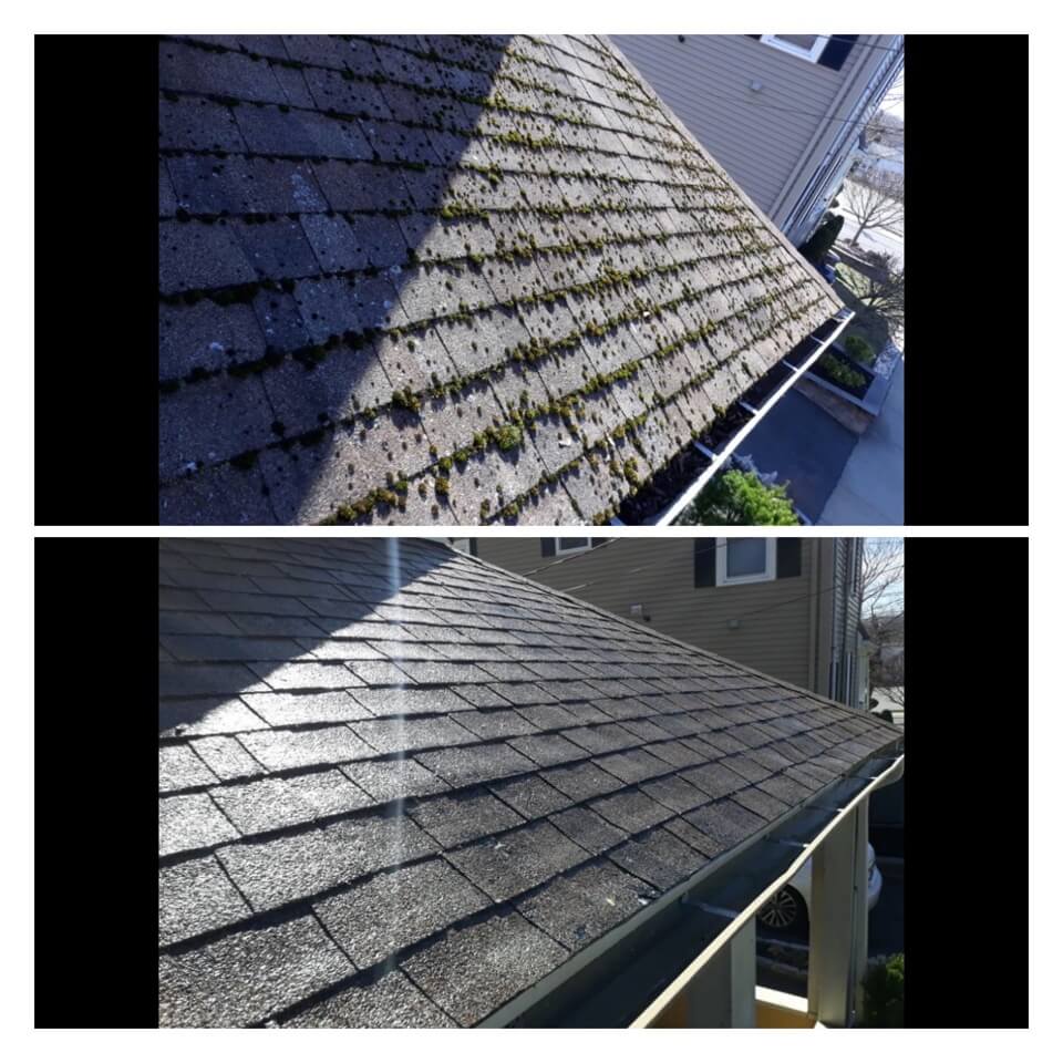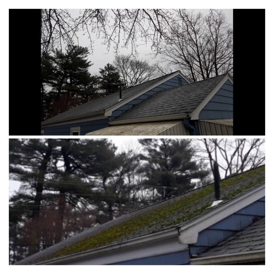 HiCleaners is the most experienced company in Holden, MA that deals with roof washing and roof soft washing. All of our employees are trained to recognize precise solution mixing ratios to provide you with the safest and most effective soft washing service. Roofs are a commonly neglected part of a house due to the fact that most people don’t have ladders to access it, so it is very easy to just leave it alone and forget about problems that may start to arise. Just like many home owners, discoloration and small bits of moss on a roof can be overlooked because of the misconception that it is just aesthetic. However, it isn’t just aesthetic, the moss slowly lifts the granules off the shingles which in turn shorten the life of the shingle. The moss also spreads, just like any bacteria if it is left alone for too long, it can quickly become a problem that spirals out of control. Call HiCleaners for a free quote, we only use the most advanced eco-friendly solutions and equipment to make sure the job is done right, for the safety of the employees, your plants, grass, pets, and children.