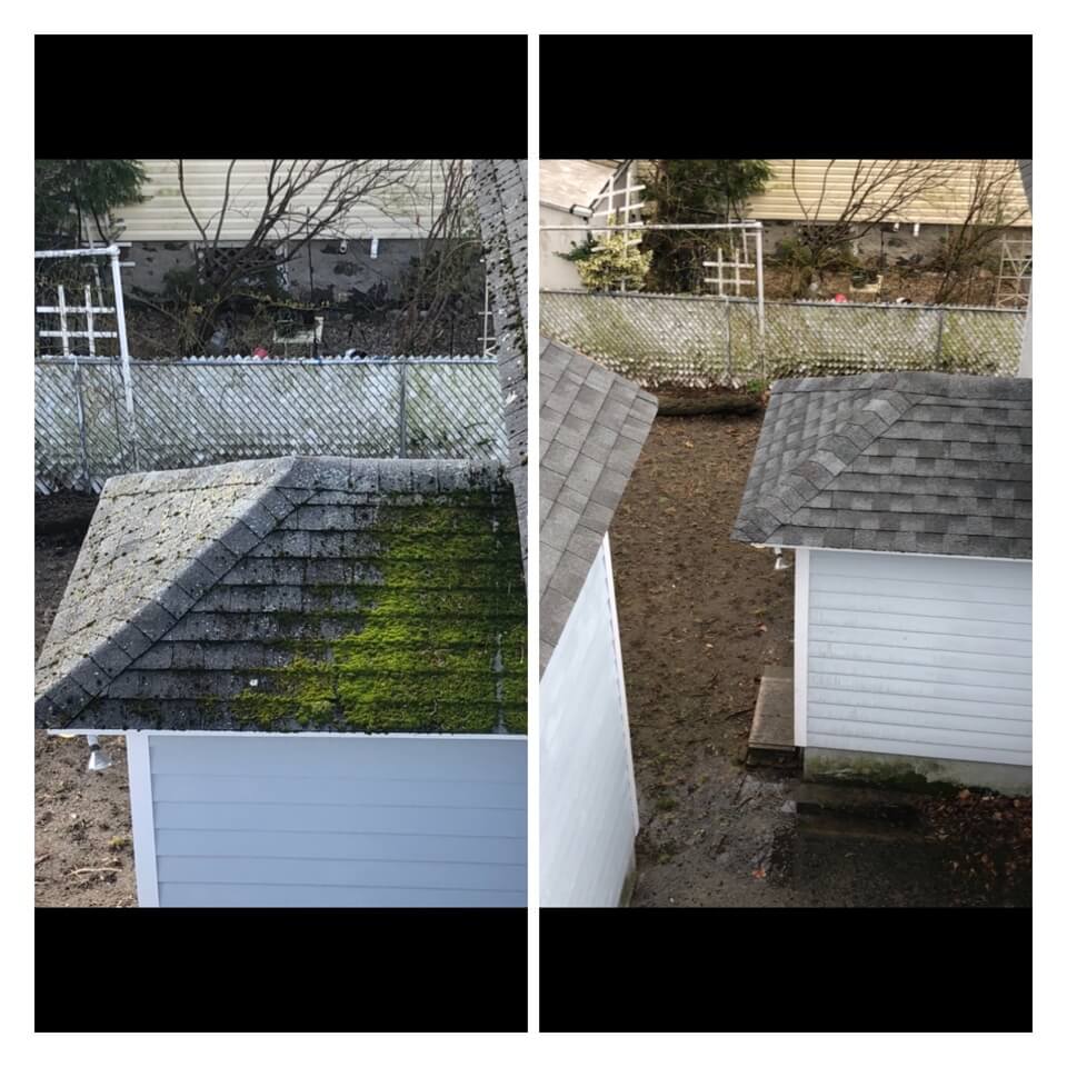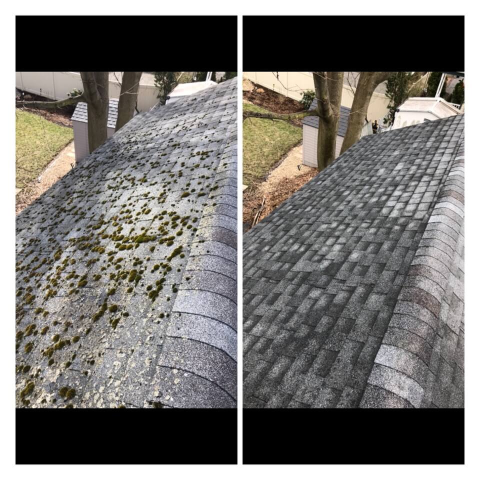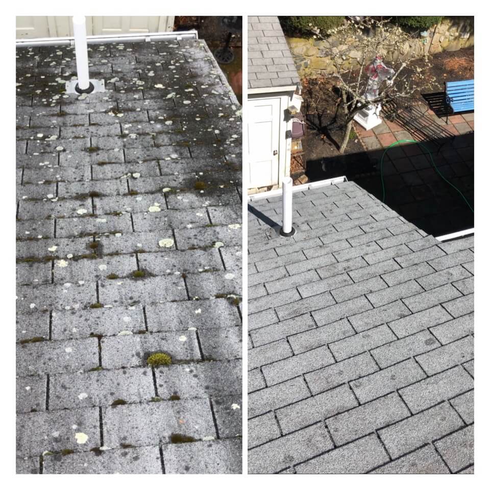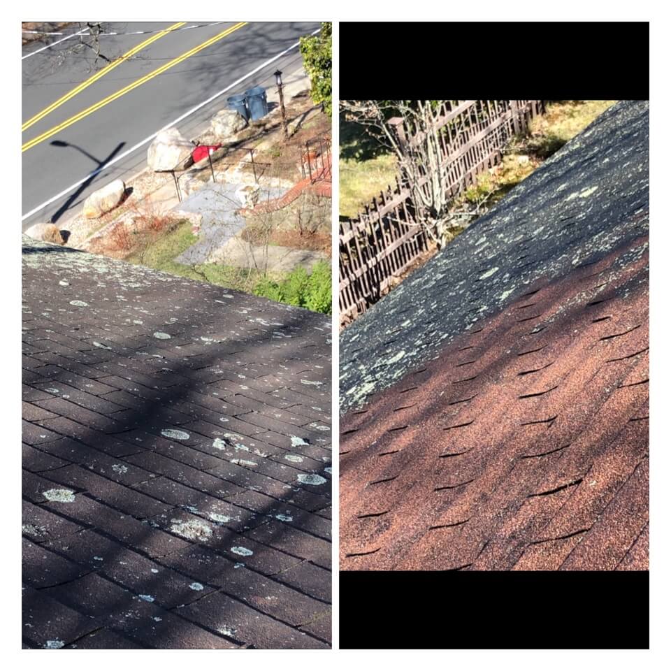HiCleaners is the most experienced company in Holden, MA that deals with roof washing and roof soft washing. All of our employees are trained to recognize precise solution mixing ratios to provide you with the safest and most effective soft washing service. Roofs are a commonly neglected part of a house due to the fact that most people don’t have ladders to access it, so it is very easy to just leave it alone and forget about problems that may start to arise. Just like many home owners, discoloration and small bits of moss on a roof can be overlooked because of the misconception that it is just aesthetic. However, it isn’t just aesthetic, the moss slowly lifts the granules off the shingles which in turn shorten the life of the shingle. The moss also spreads, just like any bacteria if it is left alone for too long, it can quickly become a problem that spirals out of control. Call HiCleaners for a free quote, we only use the most advanced eco-friendly solutions and equipment to make sure the job is done right, for the safety of the employees, your plants, grass, pets, and children.
